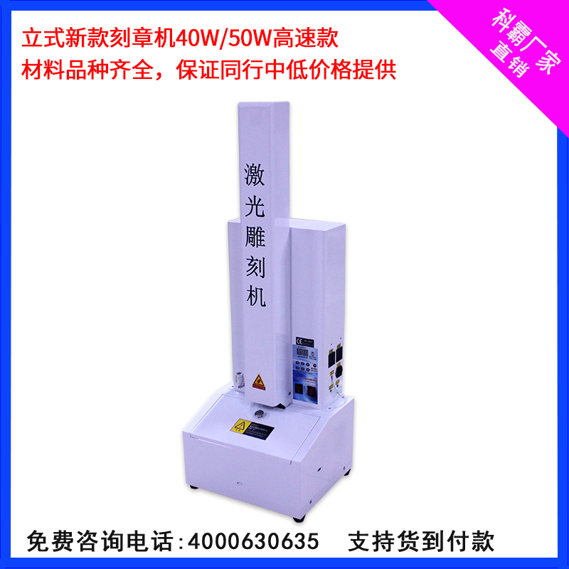立式刻章機(jī): 單一鏡片設(shè)計(jì),無(wú)需調(diào)節(jié)光路,雕刻幅面:12*8厘米左右, 占地面積小,如果專業(yè)雕刻印章推薦此款。40W配置:2200元,50W配置2350元,采用愛(ài)普龍激光管。