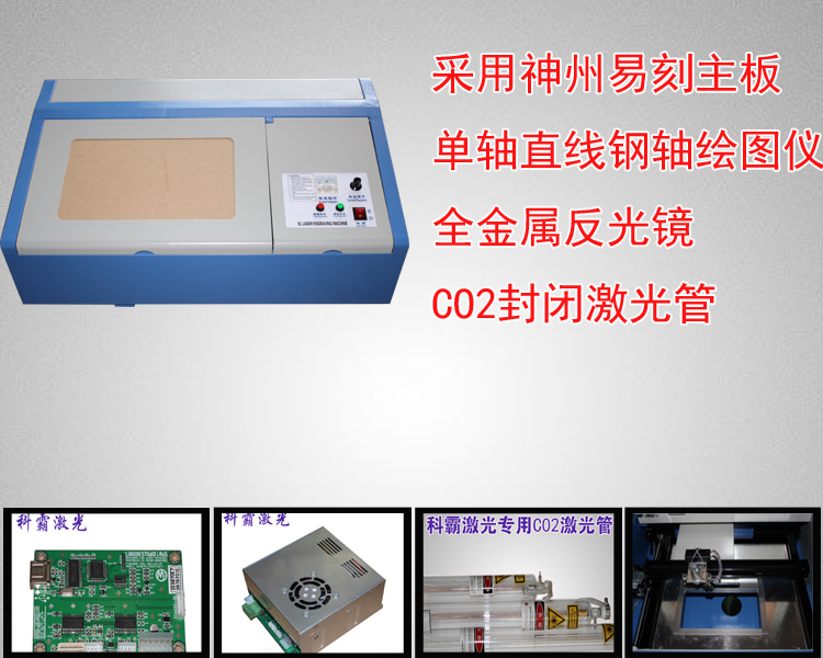 新式60W: 60W激光管(專業(yè)定做用于這種小型)智能顯示屏(有智能排除故障參考功能, 電源或是激光管壞了上面會(huì)有相關(guān)的顯示)、內(nèi)置手動(dòng)升降裝置、吹氣阻燃、直線高速導(dǎo)軌(速度快、精度高)+工業(yè)級(jí)鑰匙加密+急停止開(kāi)關(guān)+水溫監(jiān)測(cè)系統(tǒng)(可以隨時(shí)檢測(cè)循環(huán)水溫度)、專業(yè)出口激光電源(定制用于出口的激光電源)、采用M2板卡(支持CoreLaser、CDR直接輸轉(zhuǎn)換輸出,),工業(yè)級(jí)激光頭、紅光定位系統(tǒng) 、雙坦克式導(dǎo)鏈裝置+金屬反光鏡片、導(dǎo)軌采用高速直線方軌。
